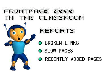 To check and fix broken links: 1) Click the Reports button on the View Toolbar. The Site Summary page appears. 2) On the Reports toolbar, click the Verify Hyperlinks button. FrontPage 2000 checks hyperlinks that you have made to other Web sites. (Note: FrontPage 2000 may prompt you to connect to the Internet so it can verify outside links.)