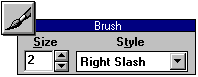 Double-click the Paint Brush to open its control panel. Set the brush size at a width of 2 pixels and the style to the Right Slash. You may want to increase the size of the brush for the large areas, and decrease it to paint pixels closer to the edge of your letters. Repeat this process until most of the stray pixels have been painted. |