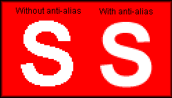 The Anti-alias effect fills in the jagged edges of diagonal lines with pixels similar to your foreground colour. This effect creates smoother diagonal lines. Notice how different text looks with and without the Anti-alias effect.