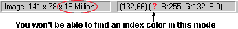 To save an image created in 16 million colors mode as a GIF, you must reduce the number of colors to 256 or fewer (as shown above).