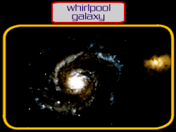 | This spiral galaxy is about 25 million light years away. Our own galaxy, the Milky Way, has a very similar structure. The galaxy at the top right of the photograph is M51's companion galaxy. |