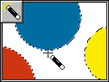 Click on the Magic Wand button and position the crosshairs of the cursor over the area of the image to be selected. Click once with the left mouse button to select the area bounded by similar colours. The area of the selection can be adjusted by changing the wand's tolerance or by repositioning the cursor.
