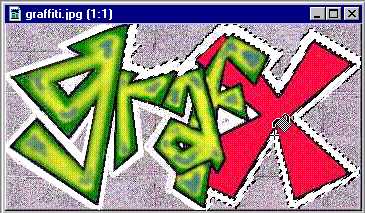 | Double-click the Magic Wand Tool and set its tolerance at 20. Select the area between the line you just drew and the edge of the text. You may notice that the entire border area is not selected. This occurs because some of the pixels may fall outside of the wand's tolerance. If this happens, increase the wand's tolerance to select more pixels. |