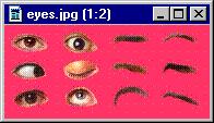 | Copy the selection. Return to the face image and paste the eye onto it. Move the eye to the best location on the face and click the left mouse button to drop it into place. |