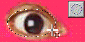 Click the oval select tool button. Position the cross-hairs of the cursor on one corner of the eye. Hold the left mouse button and drag the cross-hairs to the opposite corner. Release the mouse button.
