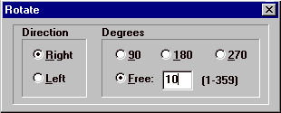 In the Rotate Control Panel select Rotate Right and Free Rotation. Enter the degrees of the rotation. In this case, it was 10.