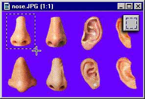 | To add a nose to the image, open the nose.jpg. Then, click on the rectangle select tool and position the cursor near one corner of the nose. Click and hold the left mouse button and drag the cursor to the opposite corner. Release the left mouse button. Copy the selection and paste it as a new image. |