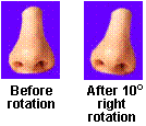 | To make the nose the same angle as the face, rotate the nose image by selecting Image--Rotate from the menu bar. |