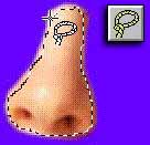 Zoom in on the rotated nose until it fills the screen. Activate the Lasso Select Tool button. Click and hold the left mouse button and trace the area just inside the edge of the nose and the background with the lasso tool.