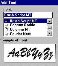 From the list of fonts in the Font Control Box, click on the font you will use for the logo of your drink label. A sample of the selected font appears in the Font Sample Box.