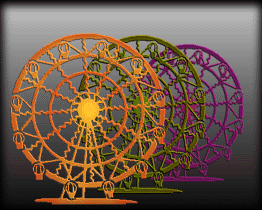 Struck by the apparent innocent charm of the place, Andrea, Brendan and Carl entered an amusement park. They saw a set of three Ferris wheels, all the same size. Andrea, Brendan and Carl each took a seat on each of the Ferris wheels.