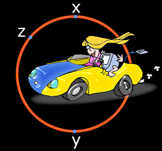 Carrie starts at point "Y" which is 180 degrees from point "X", going