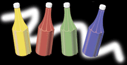 Four different-coloured bottles (red, yellow, blue, and green) are standing on a shelf in a line from left to right (not necessarily in the above order). One of those bottles is just about to fall off the right-hand edge of the shelf. The red bottle is between the yellow and blue bottles. The blue bottle is between the green and red bottles. The green bottle is not about to fall.