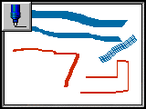 To use this tool... After selecting the colours you with to draw with, click on the Pen button and point the cursor where you want to start drawing. Hold down the left mouse button to draw with the foreground colour; Hold down the right mouse button to draw with the background colour. Begin drawing with the pen by moving the mouse. To change the size and style of the pen, double click on the Pen button.