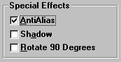 The Anti-alias effect fills in the jagged edges of diagonal lines with pixels similar to your foreground colour. This effect creates smoother diagonal lines. Notice how different text looks with and without the Anti-alias effect.