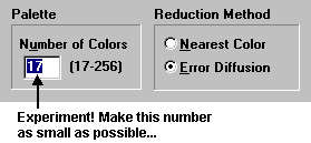 The Color Reduction control panel allows you to select the maximum number of colors you want in your image.