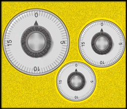 Turn the third dial to a number which is one-fifth that of the second dial.