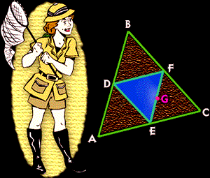 Betsy is at Point D while the Empress is at Point G. The palace (ABC) is equilateral, as are all the rooms inside the palace (the interior triangles). The distance from Point A to Point B is 100 meters.