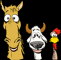 Three animals were sitting together. Each was either a goat, a chicken, or a horse. There may have been more than one of each of these, and there may have been none of these, but these were the only possibilities.