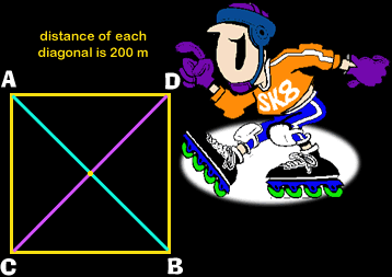Cathy begins at point C, and skates across the diagonal, which is 200 meters long, to point D.