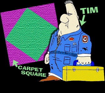 Tim, the tile man, has landed a contract to cover the floor of a new software emporium. The eccentric owner has requested a bottom layer of ceramic tiles that measure 50 cm x 50 cm each, and a top layer of carpet squares that measure 60 cm x 60 cm each.