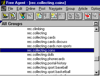 Usenet newsgroups can be read at thousands of sites around the world. Check with your Internet service provider to see if it has Usenet access. If it does, all you need to start browsing through newsgroup messages is one of the many freely available newsreader software programs! You probably have one from your Internet service provider already loaded onto your computer. We will be using the freeware program, Free Agent for these lessons. Do not fret if you are using a different program. Most, if not all newreaders will allow you to perform these functions: