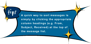 Outlook Express lets you arrange your message lists in any order you prefer. You can sort messages according to the date they were received, the subject titles, or the senders' names. Your lists can run from top to bottom or vice-versa. It's up to you.